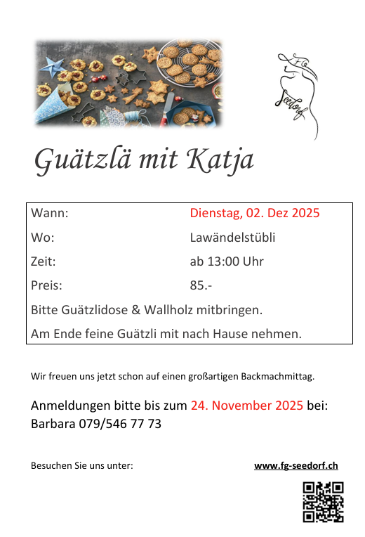 Guetzlä mit Katja, siehe Dezemberprogramm ↓