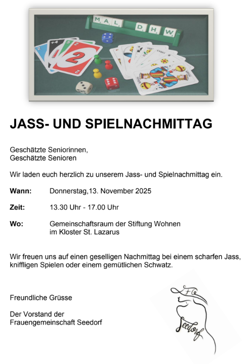 Wir freuen uns, wenn wir euch zu diesen Veranstaltungen begrüssen dürfen. In der Zwischenzeit wünschen wir euch alles Gute und beste Gesundheit.